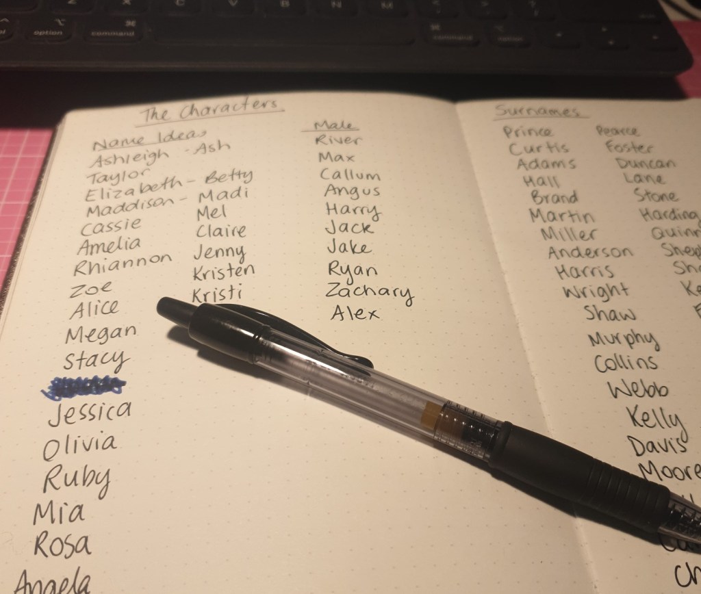 Today I’m looking at lists of baby names, lists of surnames, lists of people in the online phone books, and writing down the ones that leap out at me. As I’m writing the first draft I like to have these lists so that as I write, even if there’s an incidental character who needs a name I can just look at my list and choose one. This impacts the flow of my writing minimally. Names are important to me and I’ve even changed a characters name halfway through a book, which leads to painful time editing that day!